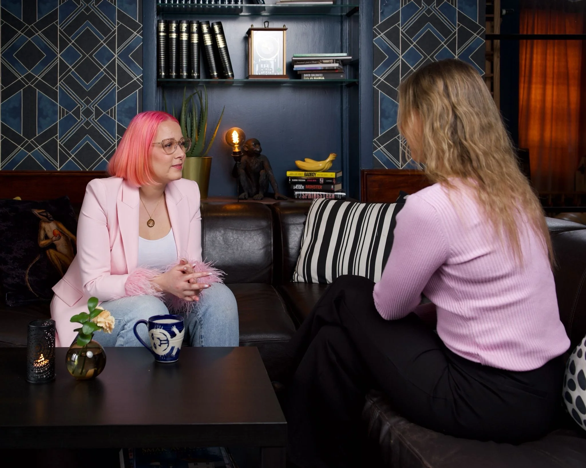 Samtalene våre blir varme, i et trygt rom, med løsningsfokuserte samtaler for å styrke deg. Vi dykker ikke direkte ned i dine traumer. Vi jobber med hverdagen din og hvordan du kan finne rom og sette grenser som gjør det trygt for deg å utforske og bli trygg på noe som ble tatt fra deg.